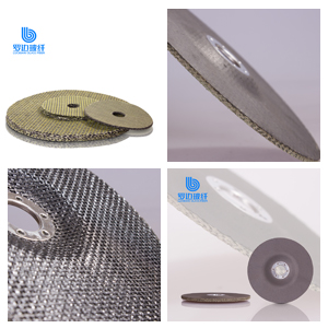 “羅邊玻璃纖維增強砂輪網片 是采用玻璃纖維增強網布涂以酚醛、環(huán)氧改性樹脂,經烘培后沖切而成,裁切采用外徑、內孔一次沖切成形工藝。因此,網片具有尺寸公差小,同心度好,周邊光潔等優(yōu)點。該產品主要為不織布復合網片、黒紙復合網片和純網片,具有極好的耐熱性、高速切割性能及高結構強度?!?/span>